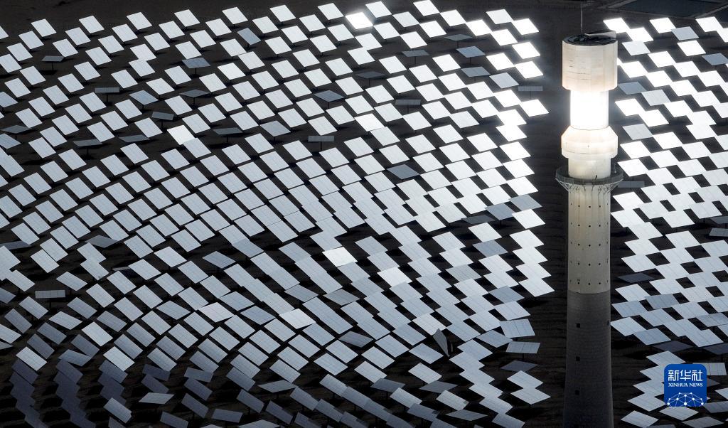 这是2023年6月11日在青海省海西蒙古族藏族自治州格尔木市拍摄的一座光热电站(无人机照片)。 新华社记者 张宏祥 摄