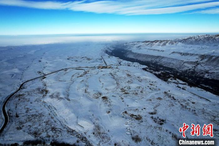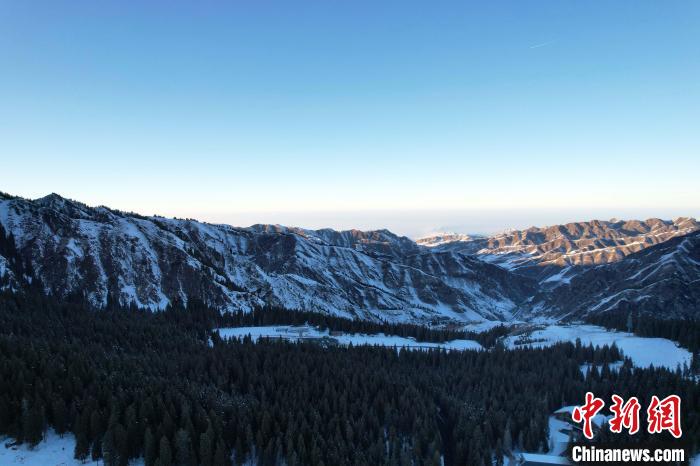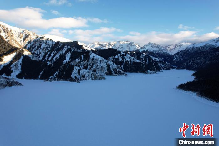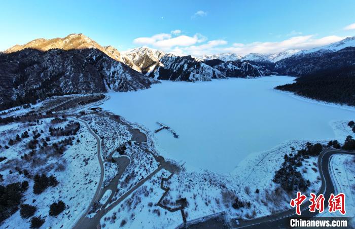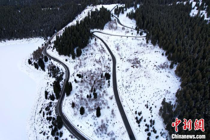 图为12月22日,雪后的天山天池景区银装素裹,美如画卷。(无人机照片) 中新网记者 张斌 摄