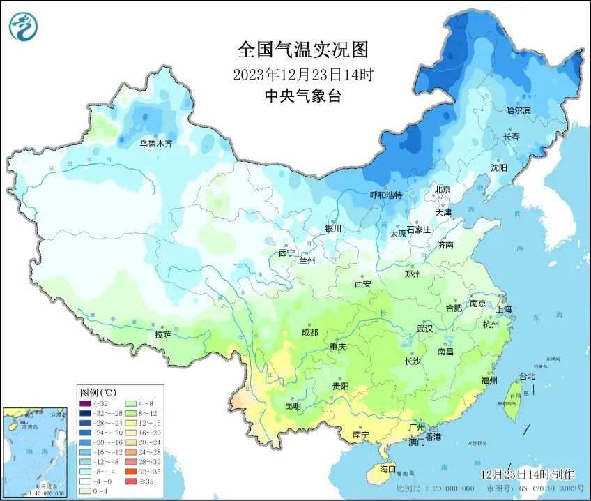 预计23日20时至25日08时,江淮、江南、华南以及山东西北部和半岛地区、河北南部和西北部、山西北部、陕西北部等地日最低气温较历史同期偏低5~7℃,其中浙江中部、江西中部等地偏低7℃以上,最低气温0℃线将位于贵州南部至华南北部一带。