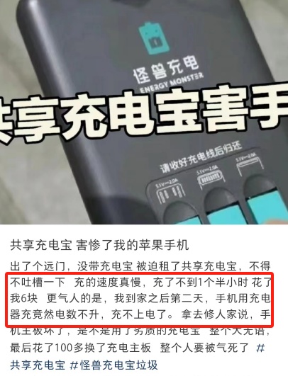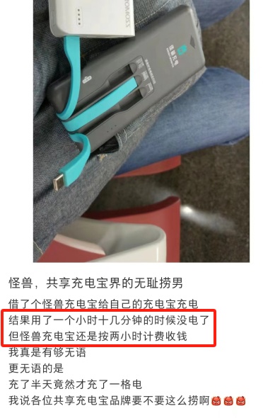 “我在诸暨市中心医院租借了一个咻电品牌的共享充电宝,弹出来后显示满电,标定容量5000毫安,但我的手机仅充了10%的电量,充电宝就没电了,可咻电还是扣了我3元。”