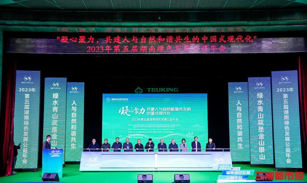三湘都市报·新湖南客户端12月24日讯(全媒体记者 叶竹)“我们要广泛凝聚社会力量、充分激发公众智慧,实现联动互助,推进跨界合作,为湖南生态文明建设展现新作为贡献力量。”12月23日至24日2023年第五届湖南绿色发展公益年会在宁乡举行,来自全省各地的300余位生态环保组织代表在会场上发出“汇聚智慧力量 建设美丽湖南”倡议,旨在动员社会力量,积极投身生态文明建设,以绿色厚植底色,以绿色造福人民,以绿色赢得未来。