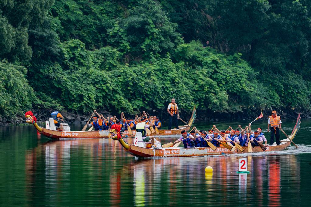 6月20日,浙江省建德市乾潭镇的村民们在胥溪参加龙舟赛。近年来,乾潭镇充分挖掘自然山水的优势,将体育旅游、生态旅游、乡村度假有效结合。新华社记者 徐昱 摄