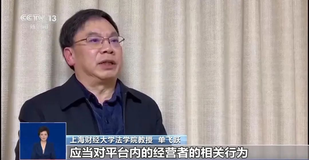 上海财经大学法学院教授 单飞跃:特别是平台,应当对平台内的经营者的相关行为进行相应的监督管理。