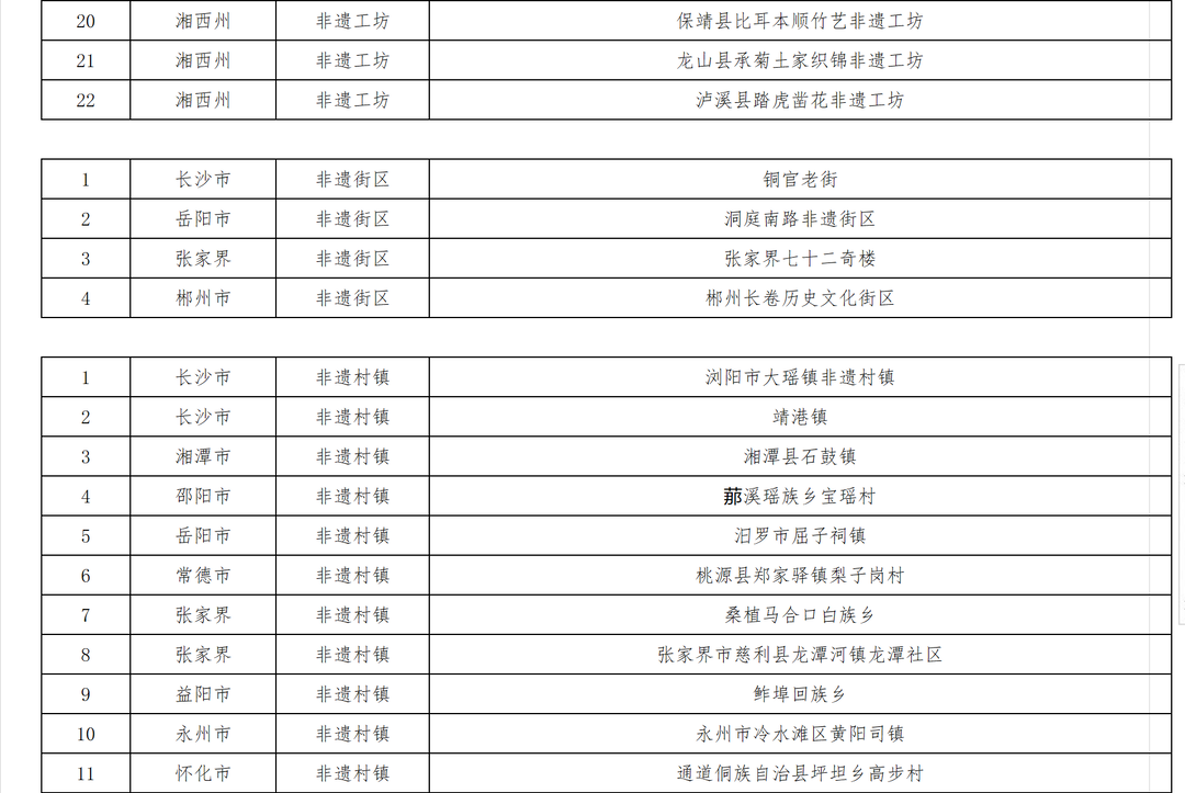 根据《湖南省文化和旅游厅关于印发〈湖南省非遗工坊、非遗街区、非遗村镇示范点创建方案〉的通知》(湘文旅非遗〔2023〕109号)要求,经各相关单位自愿申报,各市州文化旅游广电(体育)局推荐,省文化和旅游厅组织专家对申报单位开展了基础评价,对部分地区现场评审。