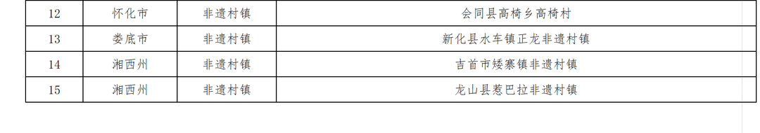 浏阳市大瑶镇、靖港镇、湘潭县石鼓镇、𦰡溪瑶族乡宝瑶村等15个村镇为2023年湖南省非遗村镇示范点。