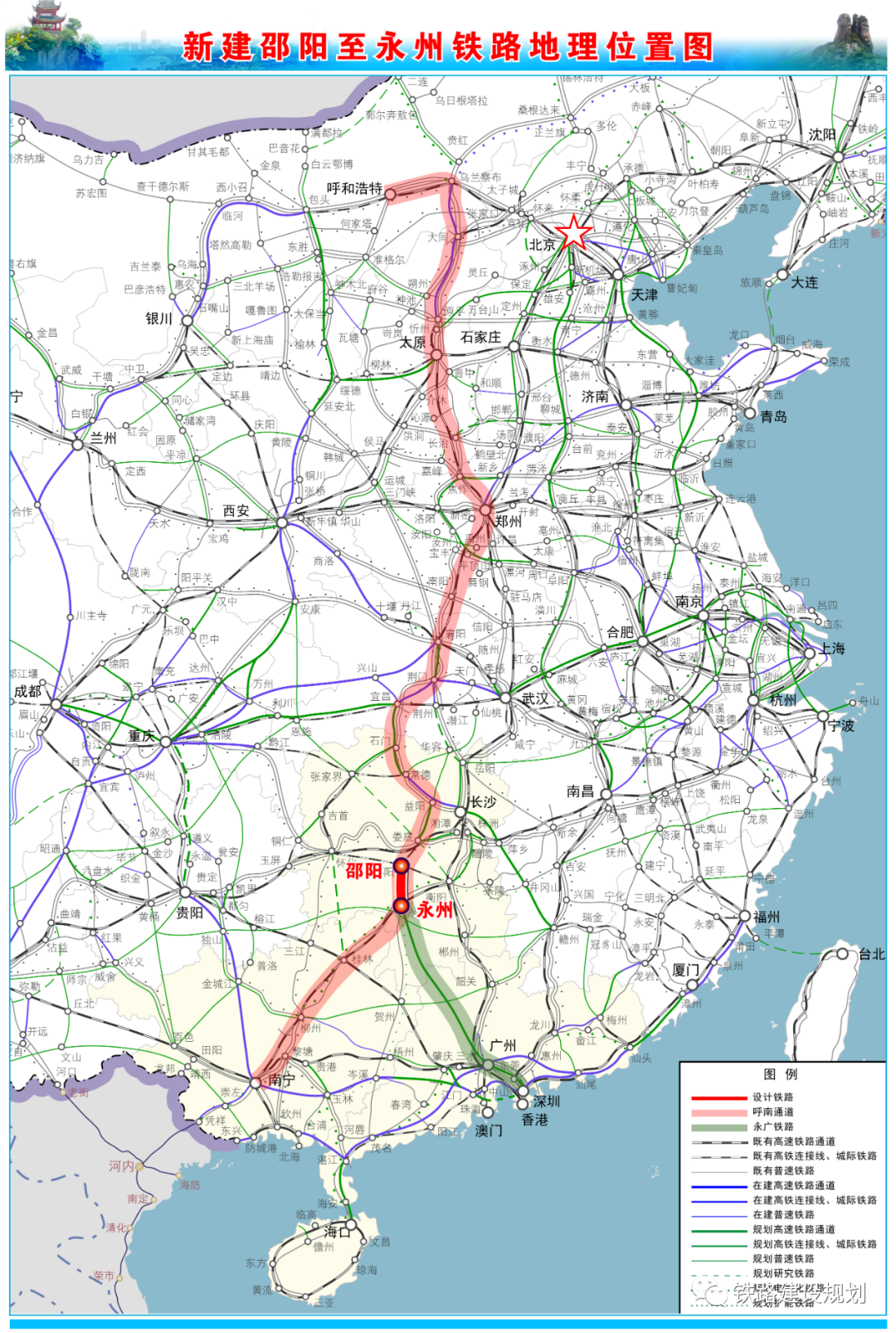 首先,来看看邵永高铁在国家铁路规划中的地位。