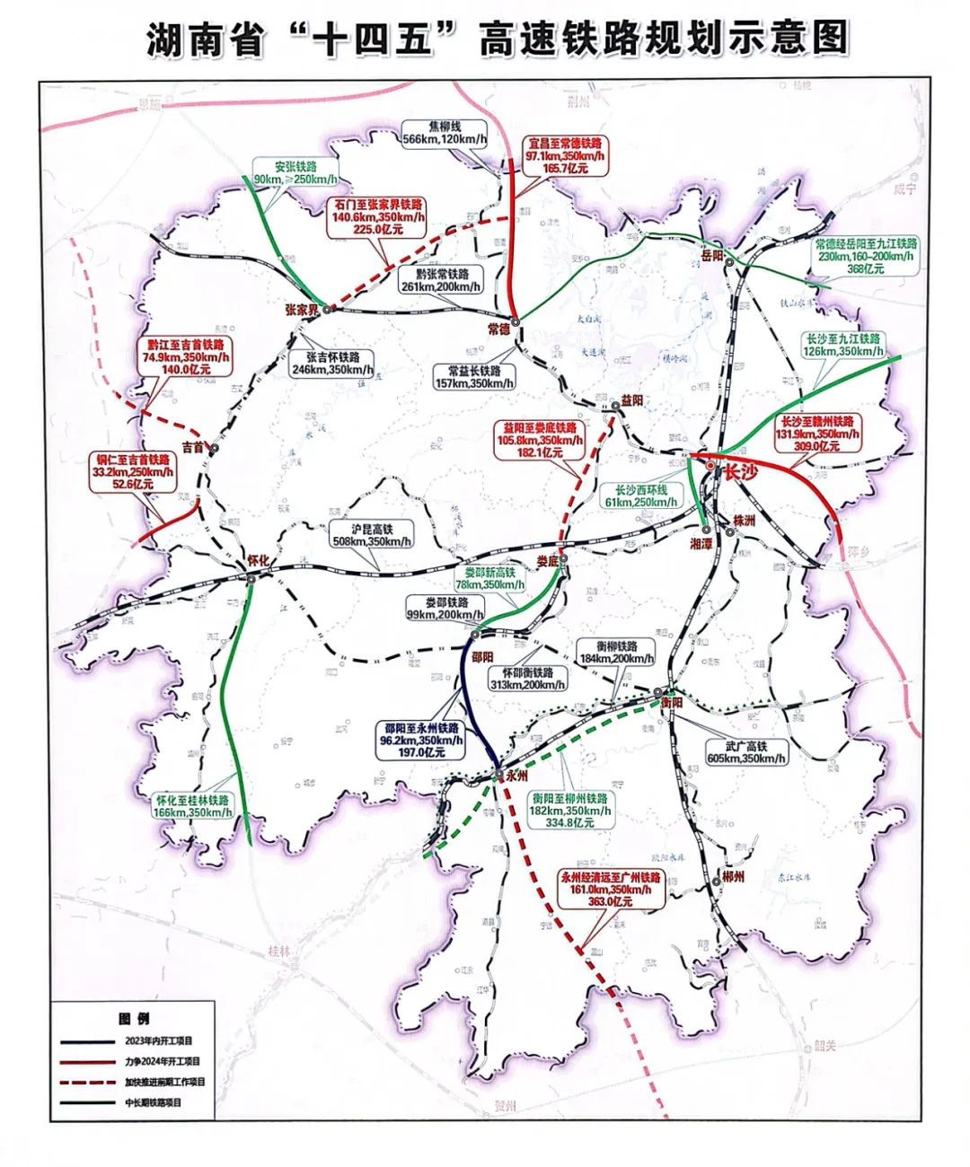 邵永铁路北起邵阳市、南至永州市,新建线路全长约96公里,全线设邵阳、邵阳县、永州3座车站,其中:利用既有邵阳站,新建邵阳县站,改扩建永州站。项目可研批复投资总额197亿元,建设工期4年,设计时速350公里/小时。