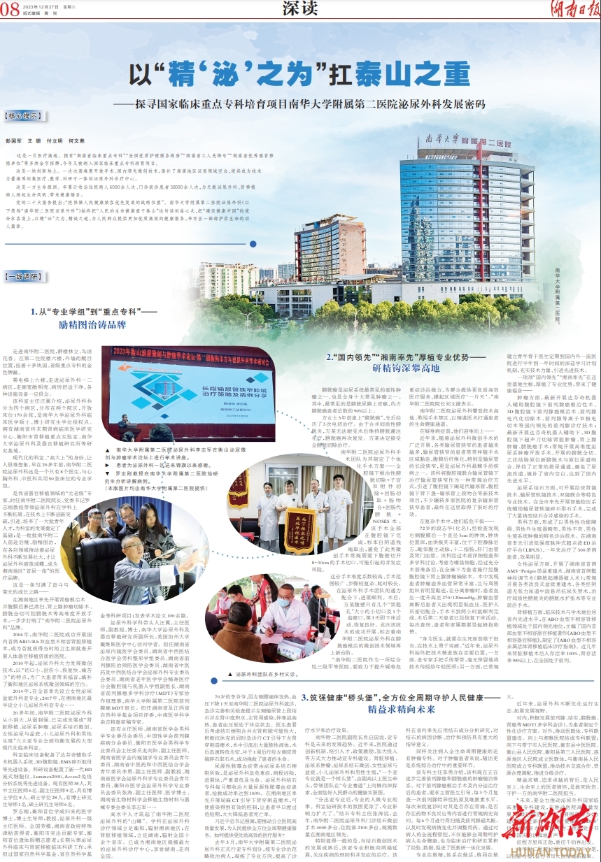 “未来,要全力推动泌尿外科国家临床重点专科建设,在推动医院高质量发展、建设区域医疗中心上展现新作为,为建设现代化新湖南,实现‘健康中国2030’目标贡献新力量。”南华附二医院党委书记李国庆的话掷地有声。