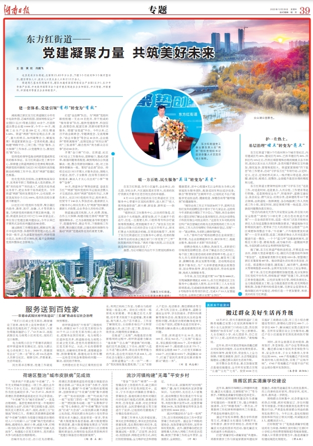 接下来,东方红街道将继续加强党建,充分发挥东方红党校平台作用,持续推进“两新”党建工作,深化湘江青春党建品牌。以经济发展为引擎,持续改善民生,全力推进稳就业工程,全力推进基层治理,优化网格治理机制,加强矛盾纠纷排查化解,完善安全监管体系,确保辖区的平安稳定,持续打造一个更加繁荣、和谐、美好的东方红街道。