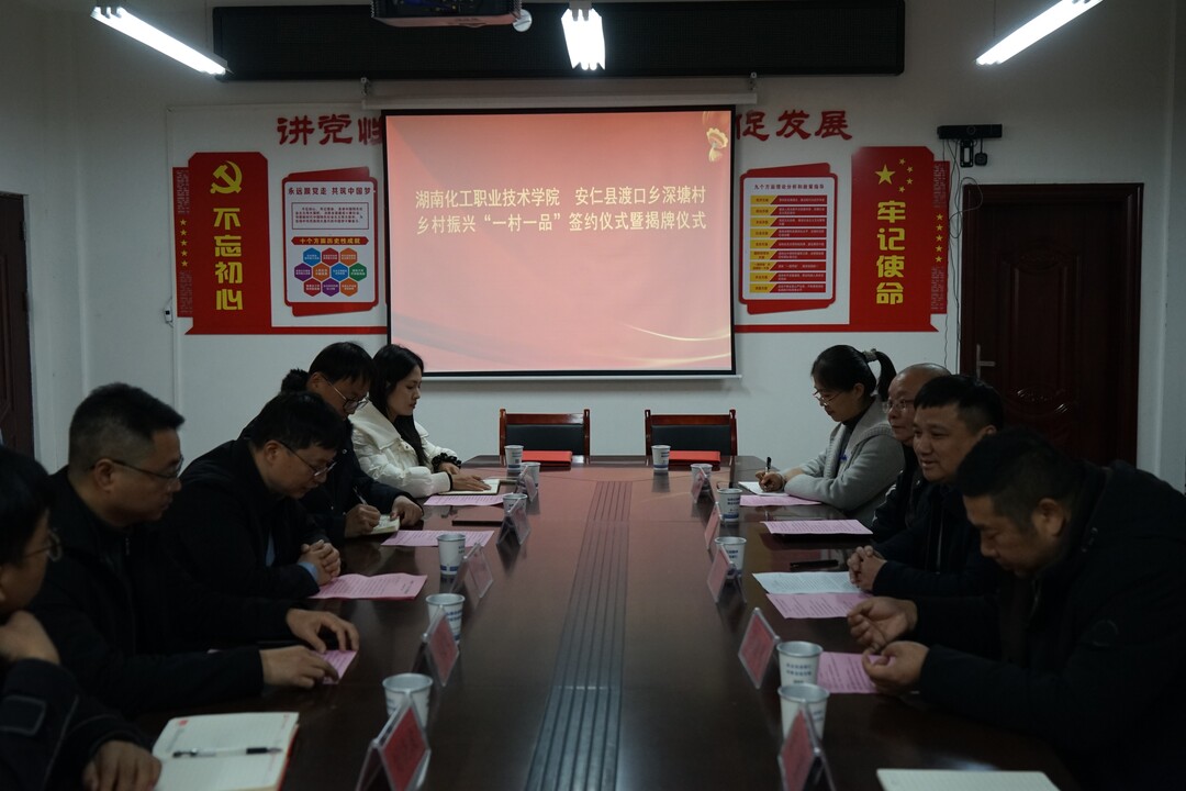 12月25日,湖南化工职业技术学院副校长魏勇军带队,学校就业创业指导中心主任刘志峰、离退休工作处副处长耿星、基础课部教师刘艳艳,前往郴州市安仁县渡口乡深塘村举行乡村振兴“一村一品”签约暨揭牌仪式,旨在深入推进深塘村“一村一品”项目建设,持续助力特色产业发展,赋能乡村振兴。