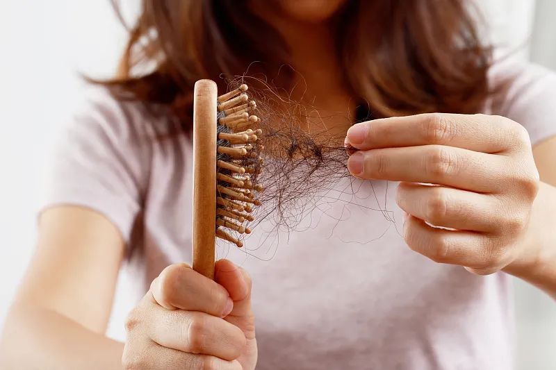 用两根手指轻轻捏住30~50根左右的头发,轻轻拉拽,如果有超过10%的毛发脱落,那就有些异常了。