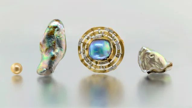 新闻上不时看到有人在贻贝、牡蛎等海鲜里吃到珍珠,甚至还有人从椰子涡螺里吃出来价值近百万的美乐珠!原来吃顿饭真的可以吃出一个百万富翁?!要想知道怎么靠吃海鲜发财(bushi),我们需要先看看珍珠是怎么形成的。简单来说,在蚌类、贝类生物的壳内有一层外套膜,当有小沙子、小寄生虫进来的时候,蚌类和贝类会分泌珍珠质,将其层层包裹,日积月累形成珍珠。从化学家角度看,珍珠主要成分是碳酸钙,和少量有机质、水等杂质。碳酸钙的颜色是白色,所以珍珠的颜色以白色为主,杂质会影响到珍珠的颜色,使得珍珠出现金、紫、粉、黑等多种色彩。有些珍珠它就不按常理出牌 图源:wikipedia当然,用上化学的力量颜色就更丰富了,比如用漂白剂可以增白去除黑斑,增加光泽。还可以人工染色,比如用硝酸盐溶液染出黑珍珠。从物理学家角度看,珍珠主要是圆球形,呈现珍珠光泽,质地致密细腻。珍珠的形状和里面的珠核形态、生长方式有关,有的是围绕砂子层层生长,有的是在人工植入的珠核基础上层层生长,所以形成的都是圆球形的珍珠。