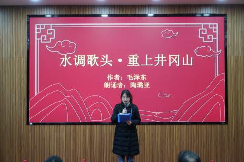 在诗词朗诵环节,主要包括《水调歌头·重上井冈山》《下雪的早晨》《回延安》《望星空》《在一块新品上触摸祖国》《新年赞新工程》《穿石坡湖》《草海》《湖南颂》等节目,其中,既有艾青、贺敬之和郭小川等人的经典诗篇,又有当代实力诗人梁尔源的作品,以及中南大学何继善院士和中南大学师生代表的作品。