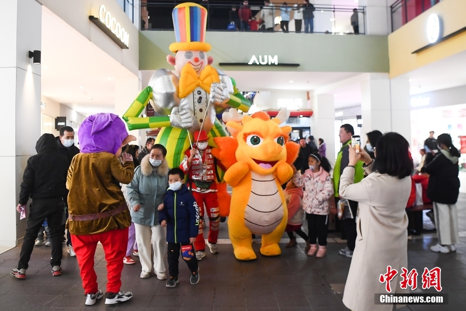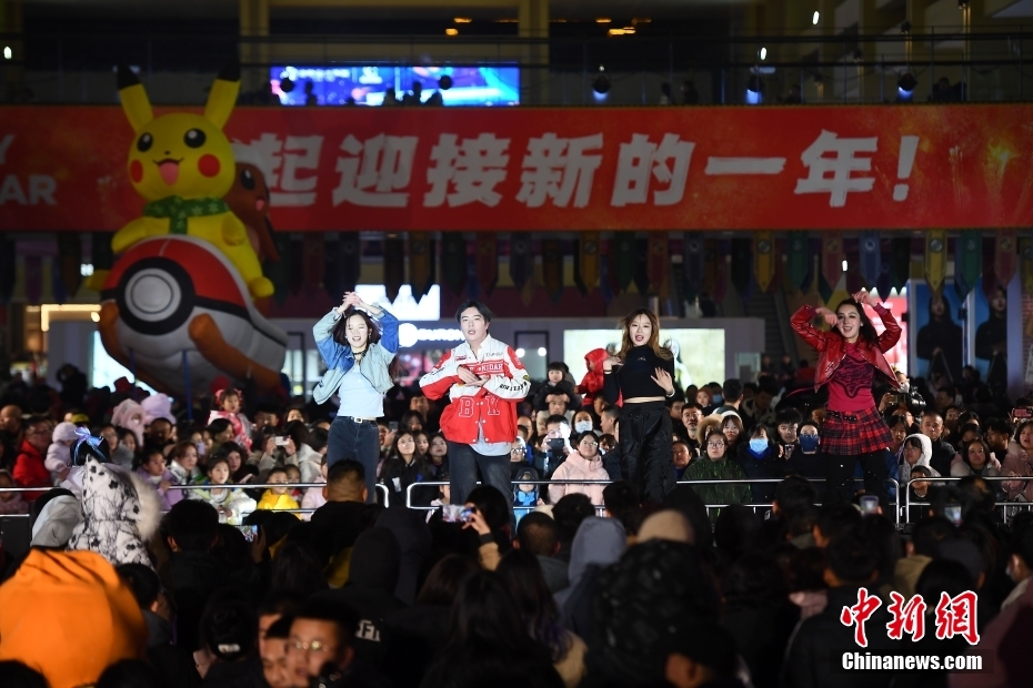 2023年12月31日,山西晋中一商场举行跨年夜玩偶巡游吸引顾客。