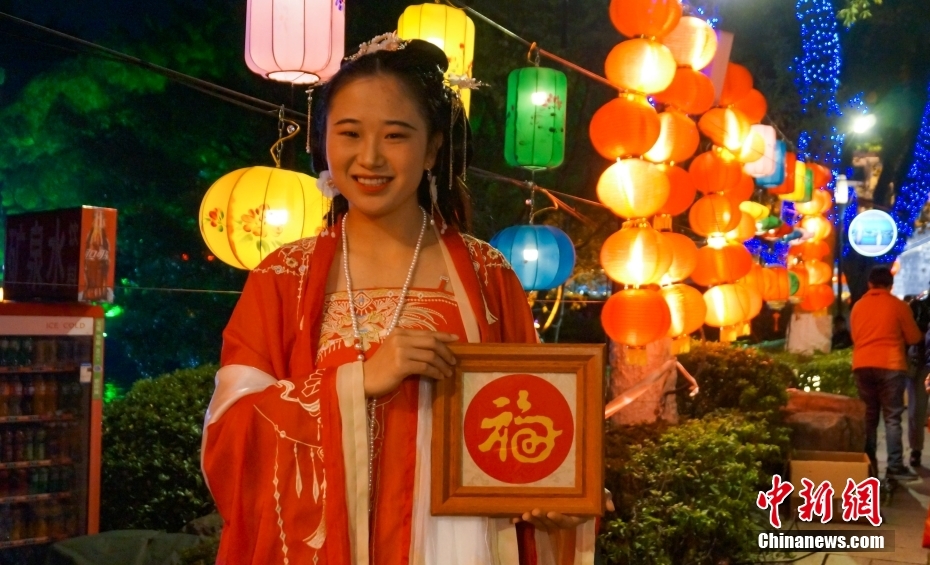 2023年12月31日晚,在广西桂林市古南门前非遗集市,游客展示拓印的“福”字。当天,桂林市举行“打造世界级旅游城市,桂林旅游之光”2024桂林跨年主题活动。