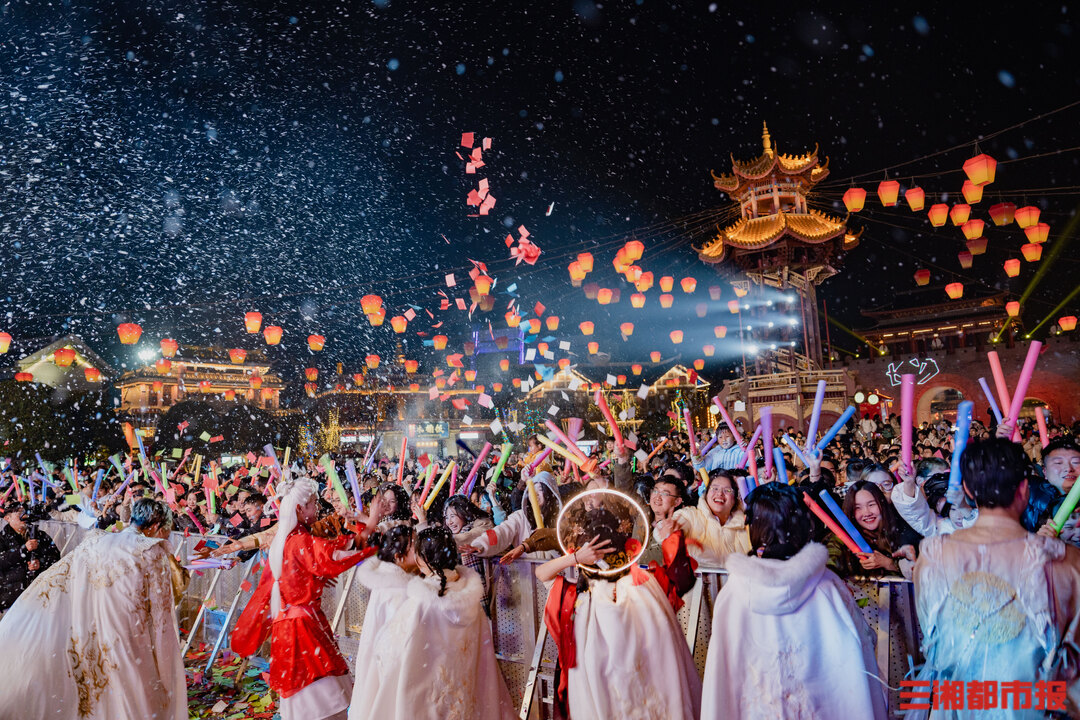 各市州也纷纷推出精彩活动,长沙市推出跨年灯光秀、新年音乐会、美食嘉年华、非遗展演、年货市集等,再到浏阳天空剧院用一场“祈福之旅”展示国风奇幻之美,网红长沙频频出圈,“火”上热搜;娄底市举办元旦猜灯谜活动,进一步丰富群众假期文化生活;怀化市坪坦乡开展“趣”坪坦过侗年系列活动,踩高跷比赛、哆耶、芦笙表演、杀年猪、打糍粑、刨汤宴、篝火晚会等民俗活动,让游客体验到民族特色风情……