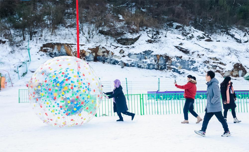 在张家界市七星山滑雪场,游客体验娱乐项目。(七星山滑雪场供图)
