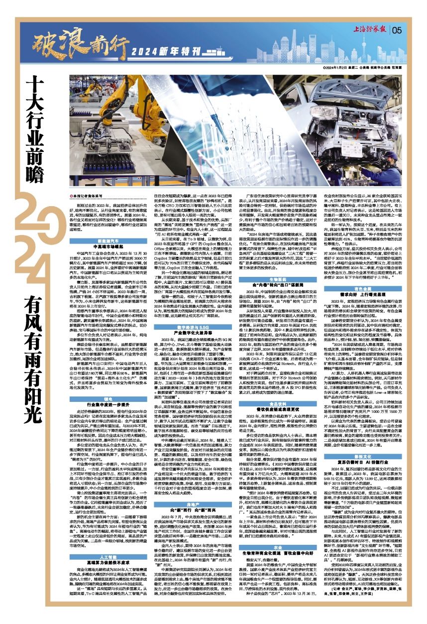 刚刚过去的2023年,我国经济总体回升向好,结构不断优化。从行业角度来看,有的高歌猛进,有的回暖复苏,有的苦苦挣扎。展望2024年,各行业又将面对怎样的变化?哪些行业将继续高歌猛进,哪些行业还在回暖途中,哪些行业还要加速转型。