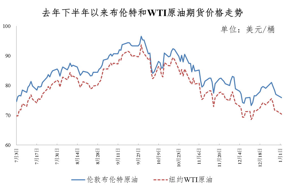 据国家发展改革委价格监测中心监测,本轮成品油调价周期内(2023年12月19日—2024年1月2日)国际油价上涨。平均来看,伦敦布伦特、纽约WTI油价比上轮调价周期上涨3.87%。