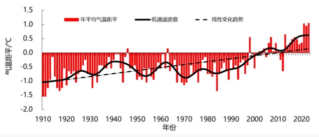 (△1910年至2023年全省平均气温距平变化)