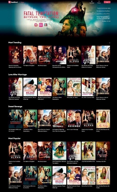随着多部短剧在海外走红,相关应用也随之火爆。以头部产品——中文在线旗下枫叶互动的出海短剧应用ReelShort为例: