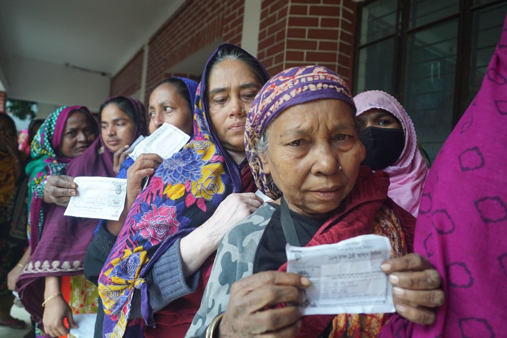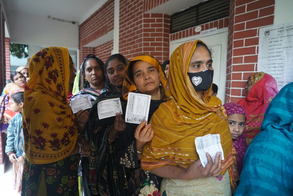 ↑1月7日,选民在孟加拉国达卡的一个投票中心投票。