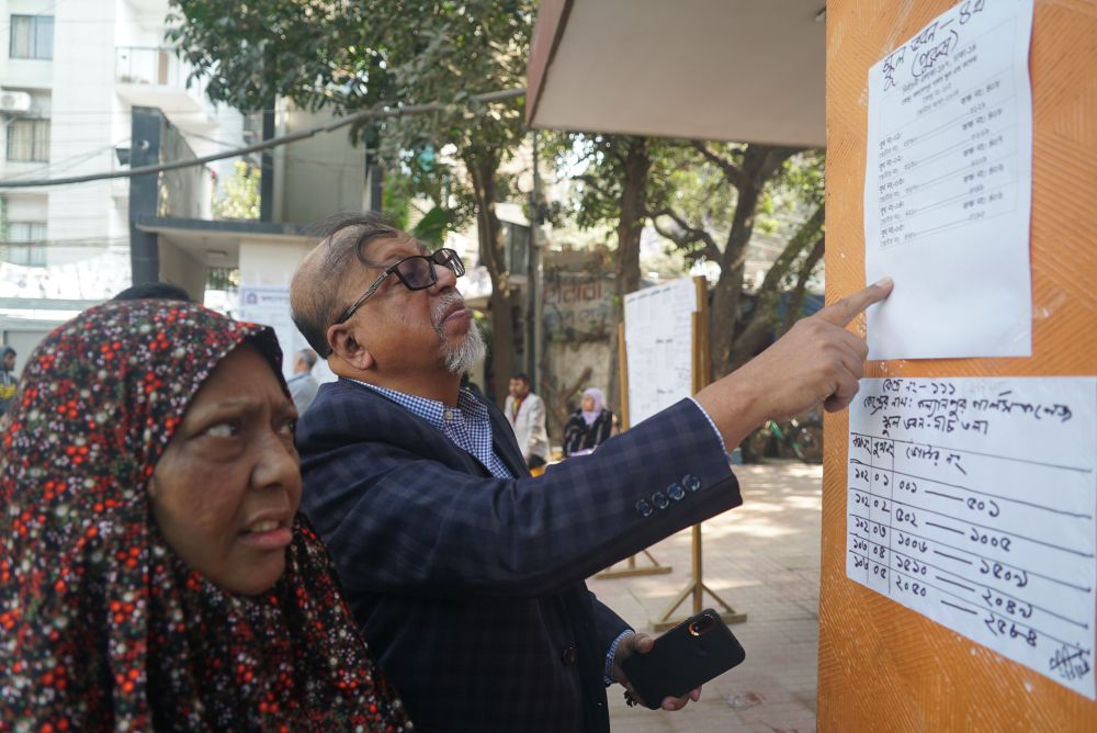 ↑1月7日,在孟加拉国达卡的一个投票中心,选民查看投票信息。