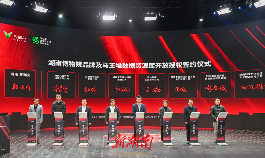 湖南日报·新湖南客户端1月8日讯(记者 陈新 龙文泱 摄影记者 郭立亮 通讯员 赖程 李叶 徐珍珍)与大众共享共建“品牌+文物数据资源”,让文化遗产焕发新活力。1月8日,湖南博物院品牌及马王堆数据资源库授权签约会暨“数字汉生活”IP品牌启动仪式在长沙马栏山视频文创产业园举行。活动现场,湖南博物院向湖南2所高校和12家头部企业首次免费开放“湖南博物院品牌”和“马王堆数字资源库”双授权,希望以此赋能产业发展,打造“文化产业化”应用标杆案例。