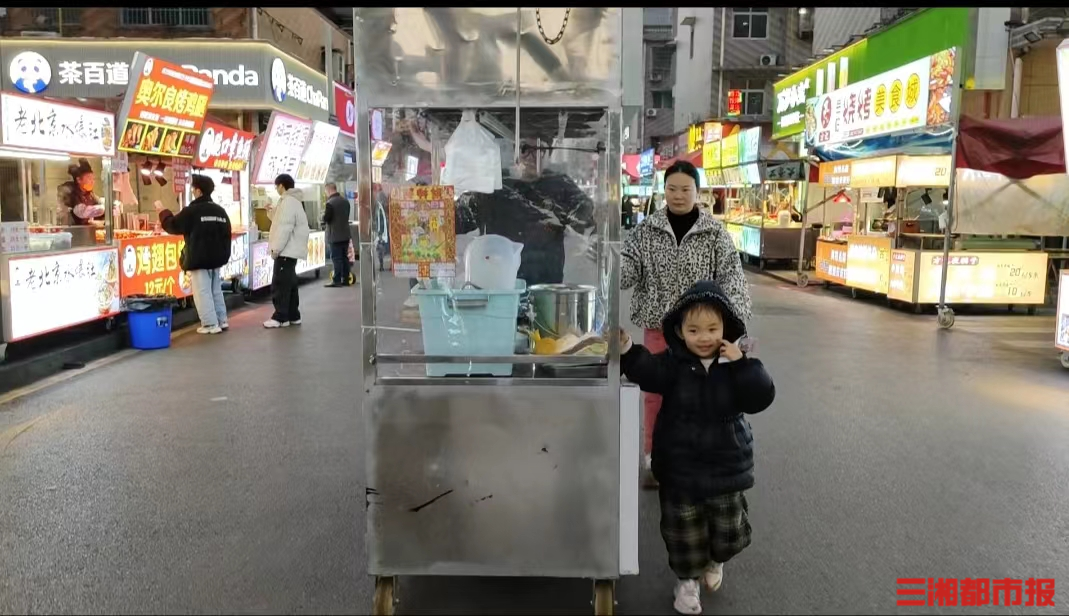 无数个摆摊的夜晚,懂事的小涵都会站在小摊边,充当着父母的传声筒,帮父母招揽生意。无数个夜晚,一家三口都会因为彼此的陪伴而幸福满足。