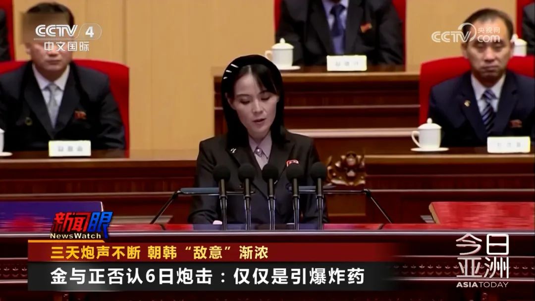 金与正在谈话中指出,朝鲜军队6日系引爆模拟海岸炮炮声的炸药,朝方此举旨在观察韩方反应。韩方把炸药爆炸声误判为炮声,臆测为炮击挑衅,并谎称弹着点位于西部海域“北方界线”以北的海上缓冲区。