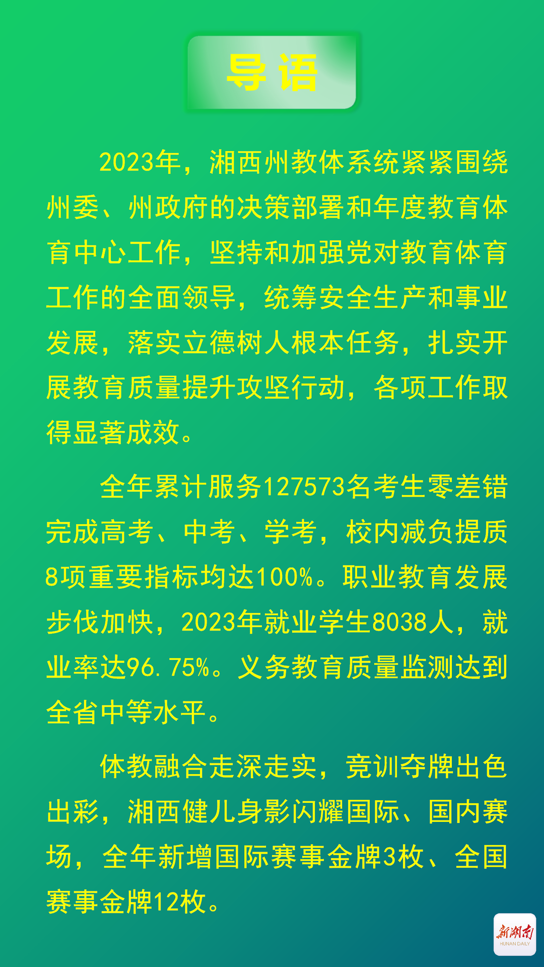 逐光前行·盘点湘西2023丨教体篇:虚心“赶考” 优异“答卷”