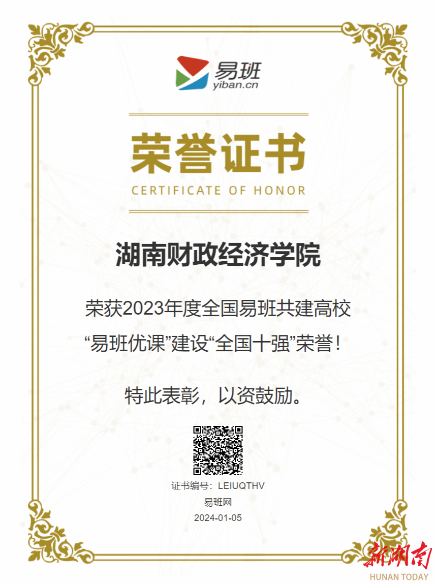 近日,教育部易班发展中心公布了2023年度全国易班共建高校优课建设评优结果,湖南财政经济学院荣获2023年度全国易班共建高校“易班优课”建设“全国十强”荣誉。