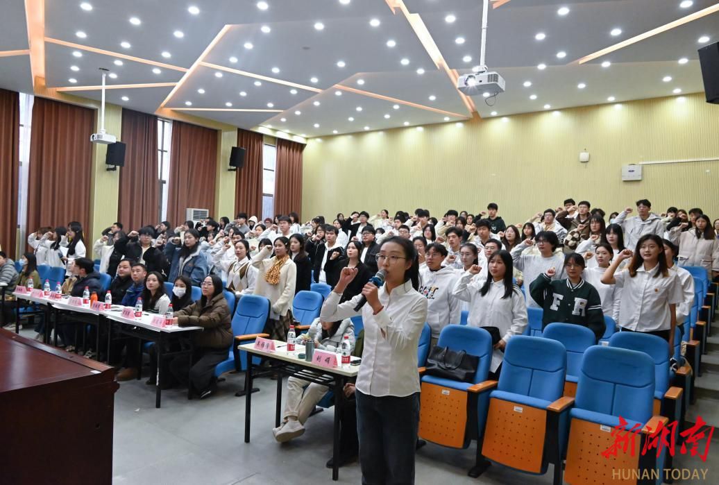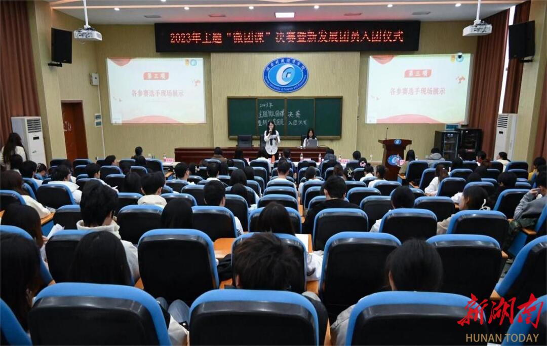 近日,湖南财政经济学院团委在第二教学楼2J03学术报告厅举行2023年主题“微团课”决赛暨新发展团员入团仪式。校团委副书记范则周、各二级学院团总支书记、主题“微团课”决赛参赛选手以及2023年100名新发展团员参加活动。