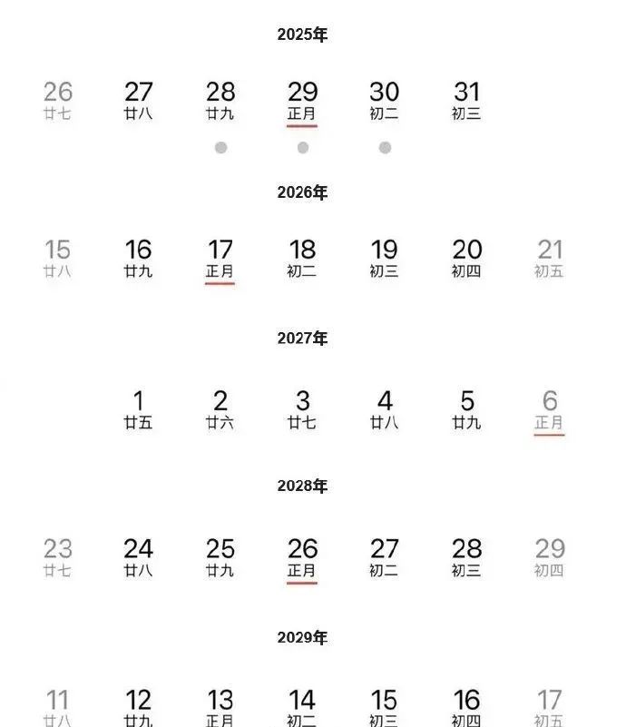 农历龙年的除夕为2024年2月9日,这可是“近几年最后一个年三十”,因为从2025年开始直到2029年,连续五年的除夕都是“大年二十九”。