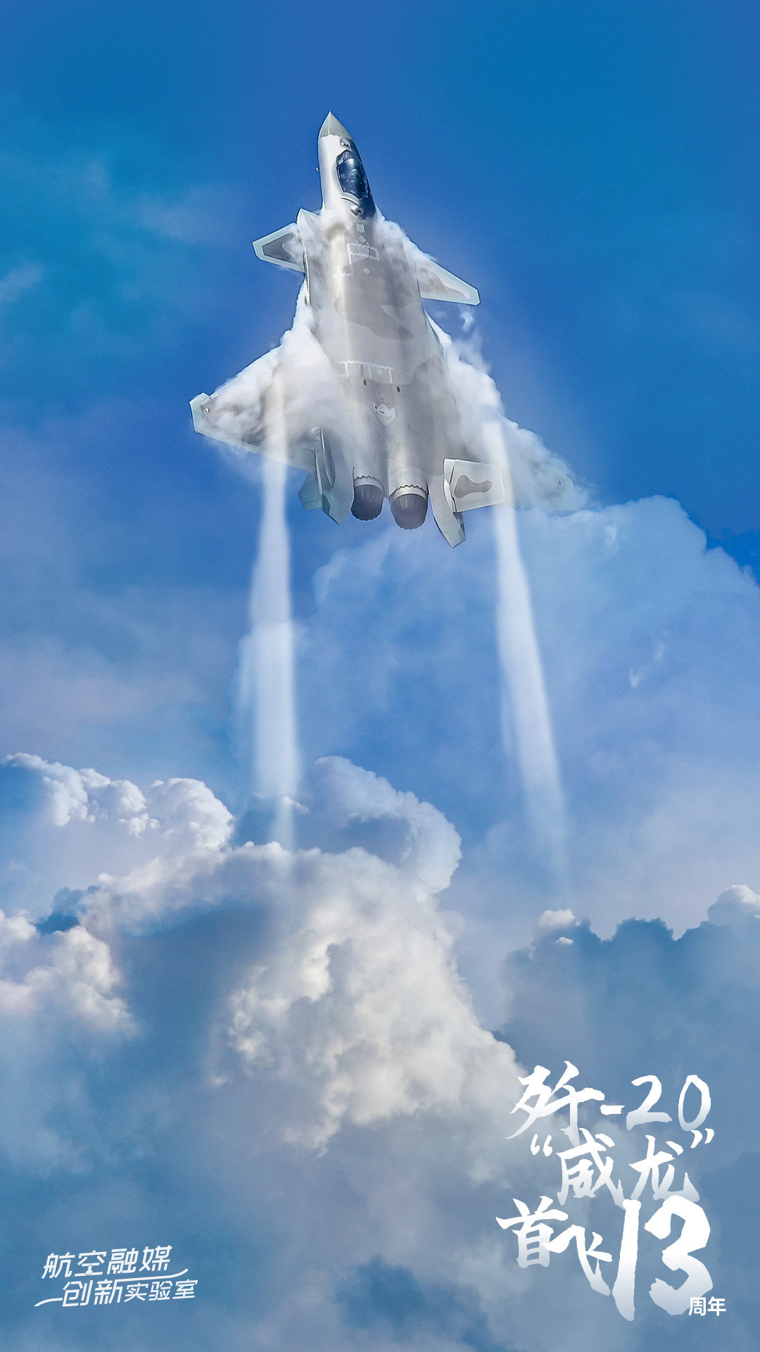 2011年1月11日,四川成都温江机场,航空工业自主研制的我国新一代隐身战斗机歼20首飞成功!研制新机“偏向虎山行”, 终得“梅花香自苦寒来”。从当年的“黑丝带”到今日的“银河战舰”,歼20的每次亮相都举世瞩目。守护祖国领空,数我战鹰“威龙”
