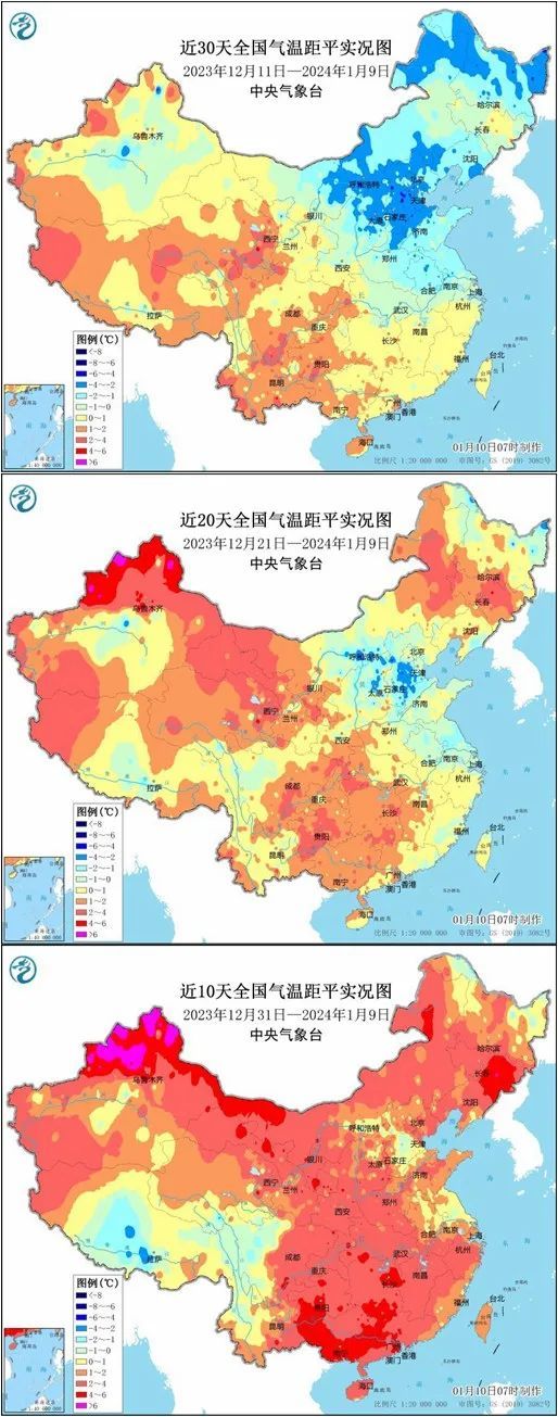 ▲从近30天到近10天的全国气温距平实况图看到,尽管最近气温大回暖,但仍难完全消解12月中旬那次寒潮带来的持续低温影响,近30天平均气温来看,华北、东北等地仍是偏冷。