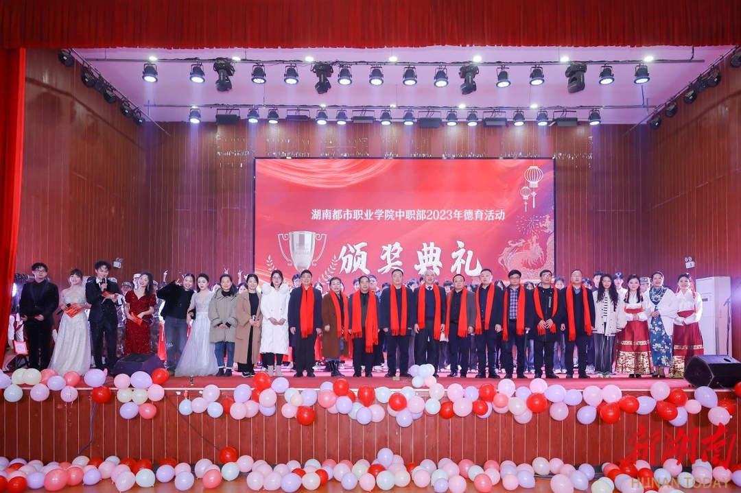 科教新报·新湖南客户端讯(通讯员 陈晓燕 罗凌颖)为进一步推动学校内涵式发展,全面展示“一部一特色、一部一品牌”特色管理建设项目成果,1月9日,湖南都市职业学院中职部在金色大厅举办了“党建引领促发展 立德树人谱新篇”2023年德育成果汇报演出暨颁奖典礼。校党委书记李华、党委副书记、校长王雄伟等在家校领导出席,相关处室负责人及中职部近700名师生共同参与汇报。