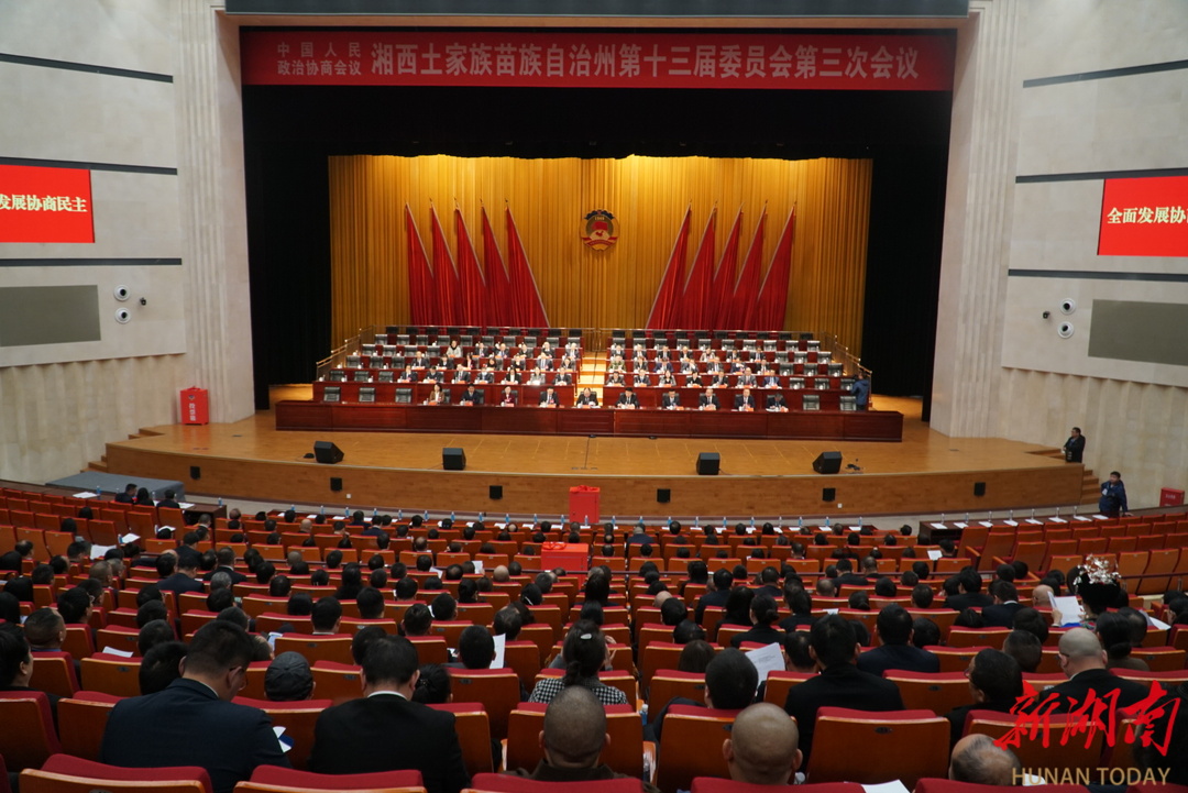 湖南日报·新湖南客户端1月12日讯(记者 李孟河 黄馨怡)1月12日上午,中国人民政治协商会议湘西土家族苗族自治州第十三届委员会第三次会议圆满完成各项议程,在武陵山大剧院胜利闭幕。湘西州委书记虢正贵出席会议并讲话。