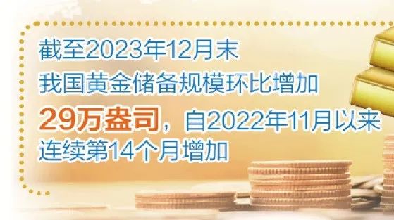 1月7日,国家外汇管理局公布数据显示,截至2023年12月末,我国黄金储备规模为7187万盎司,环比增加29万盎司,这是我国黄金储备连续第14个月增加。