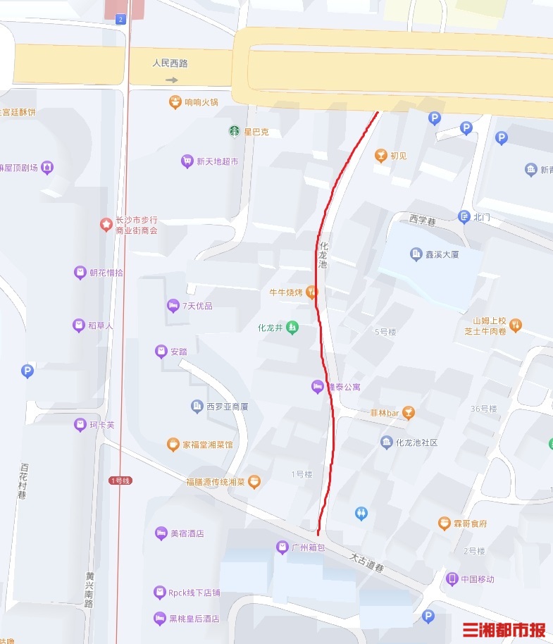 1月16日18时至1月17日1时,化龙池巷的人民路匝道口至大古道巷路口路段实施交通全封闭限制措施,禁止机动车、非机动车通行。