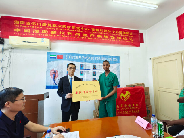 湖南日报1月12日讯(通讯员 龙晔 全媒体记者 周倜)近日,在塞拉利昂卫生部、湖南省肿瘤医院、中塞友好医院的共同组织协调下,湖南省伤口康复临床医学研究中心——塞拉利昂分中心在中塞友好医院正式挂牌成立,并启动首批医疗物资捐赠交接仪式和首场伤口康复新进展讲座。