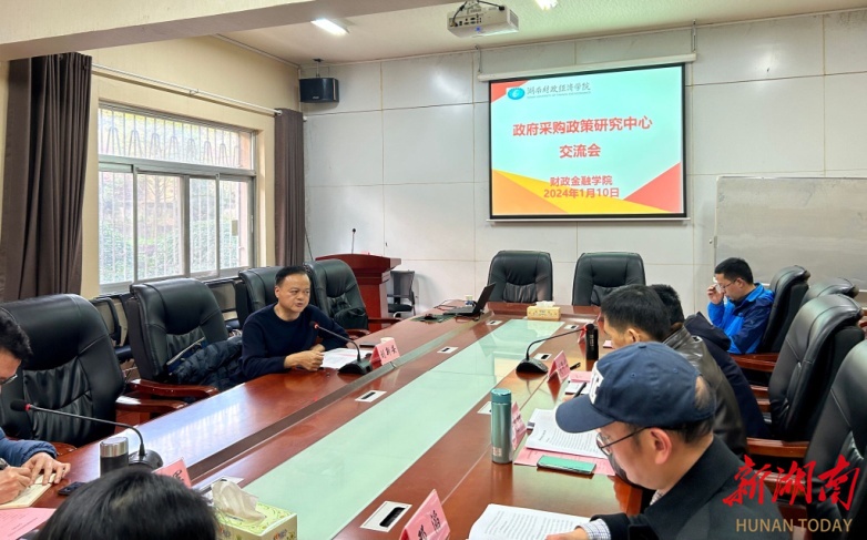 1月10日下午,省财政厅政府采购处到湖南财政经济学院就湖南省政府采购研究中心建设工作进行调研。学校财政金融学院、资产处、财务处相关负责人以及财政、税收、投资系教师参加交流会。会议由财政金融学院副院长黄华军主持。