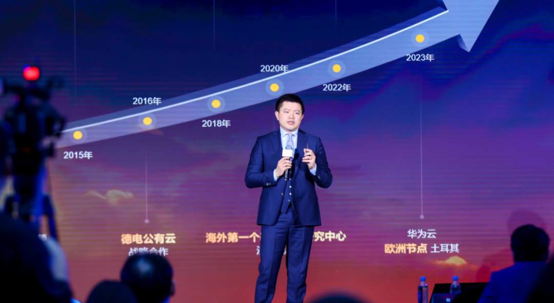 在论坛上,科大讯飞、四维图新等客户伙伴也分享了与华为云在欧洲的合作,双方通过探索、突破、创新,共同拉动企业业务实现飞跃增长。科大讯飞欧洲总经理岳辰概括了全球AI战略合作的广阔前景及出海欧洲的重重挑战,并通过自身出海经验,生动地为在场企业解析了建立合作生态对于出海欧洲的各种利好。