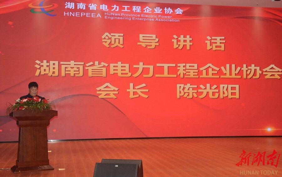 湖南省电力工程企业协会陈光阳会长在发言中表示,协会加强党建引领工作,积极开展主题教育,乡村振兴建设,搭建信息交流平台,聚焦人才培养,提升“电建湘军”品牌形象。