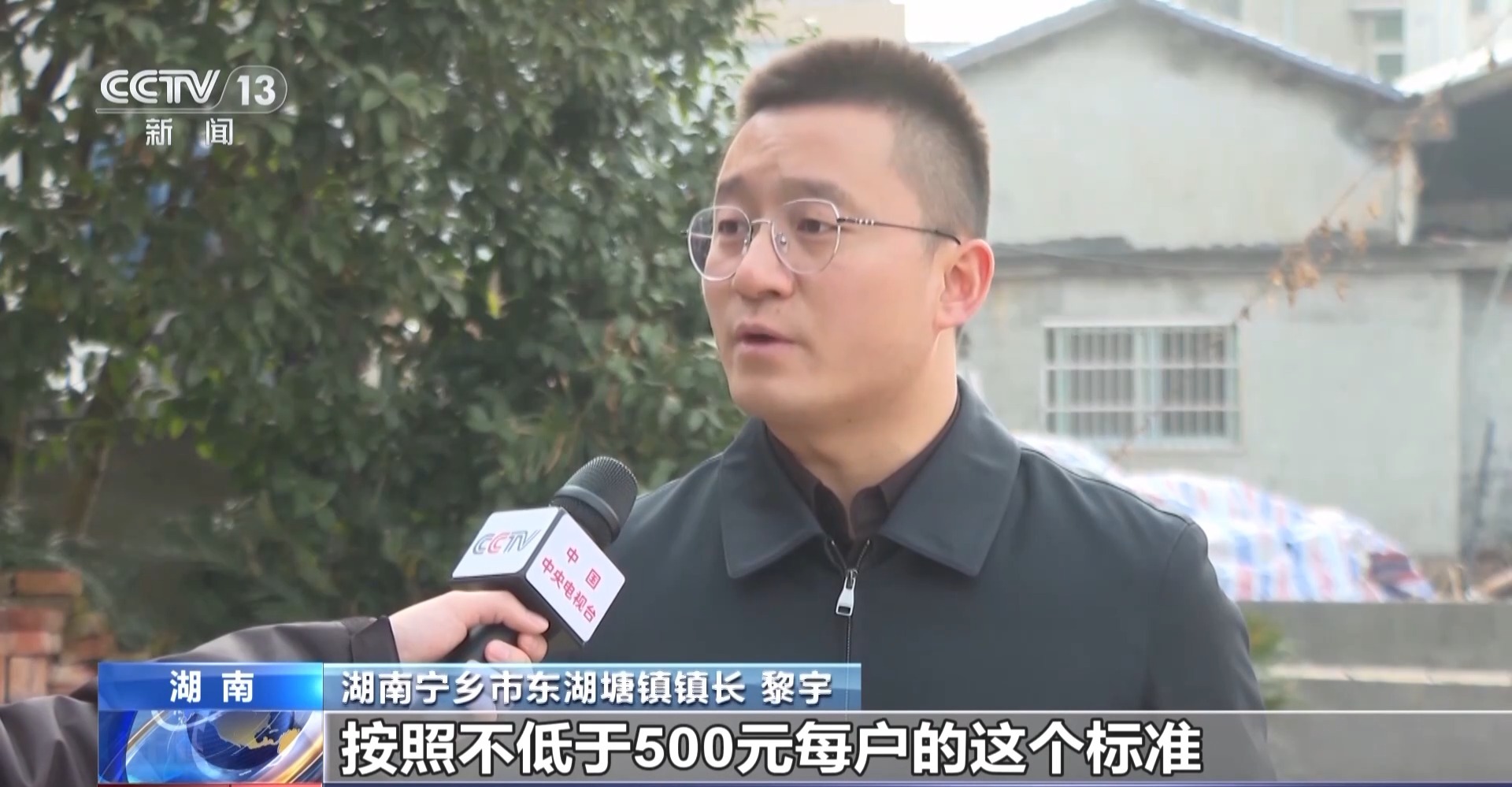 湖南宁乡市东湖塘镇镇长 黎宇:按照不低于500元每户的这个标准,发放到群众手中,目前已经全部发放到位。
