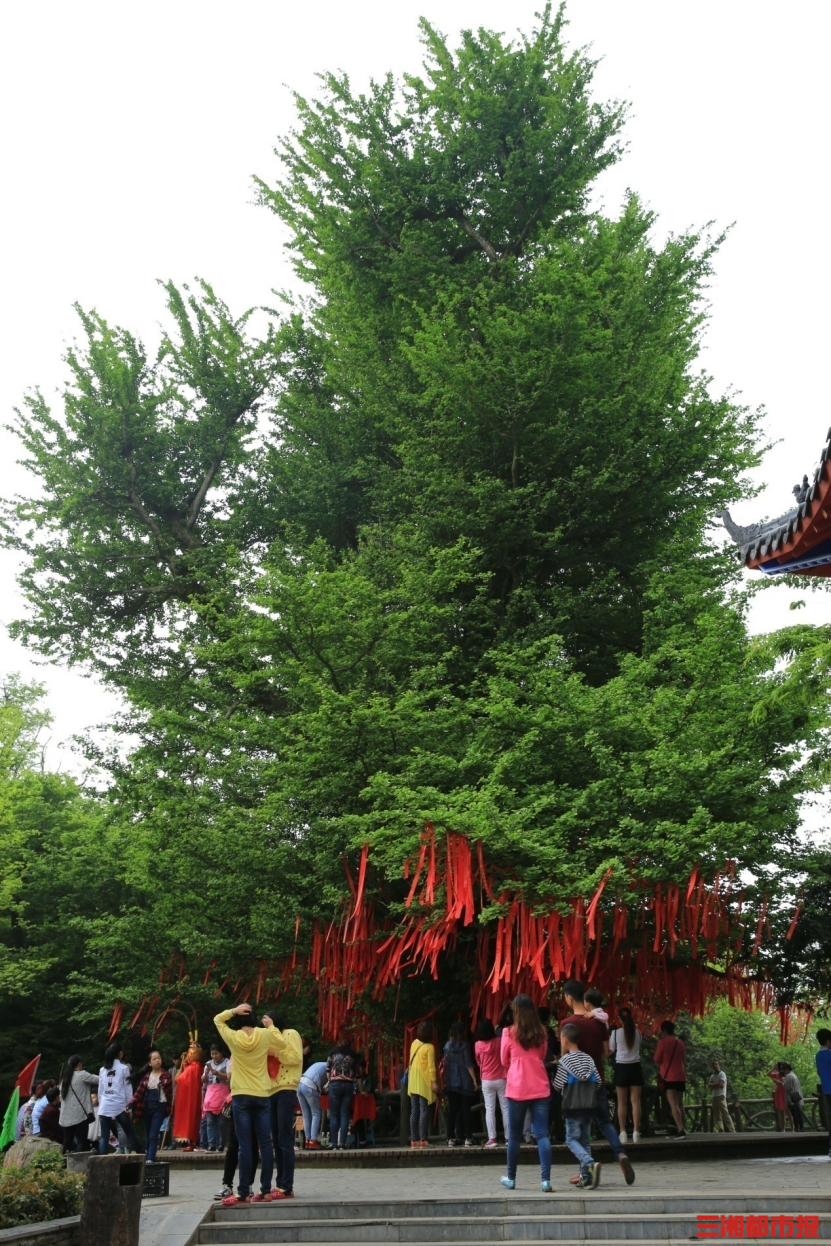 所临宝刹,乃熊山古寺。“中华银杏王”就挺立在古寺一处山坡上,古树被大小围栏环绕,树下修饰成了小广场,其树高22米,胸围9.53米,需数人方能合抱,冠幅达160多平方米,颇有遮天蔽日之感。