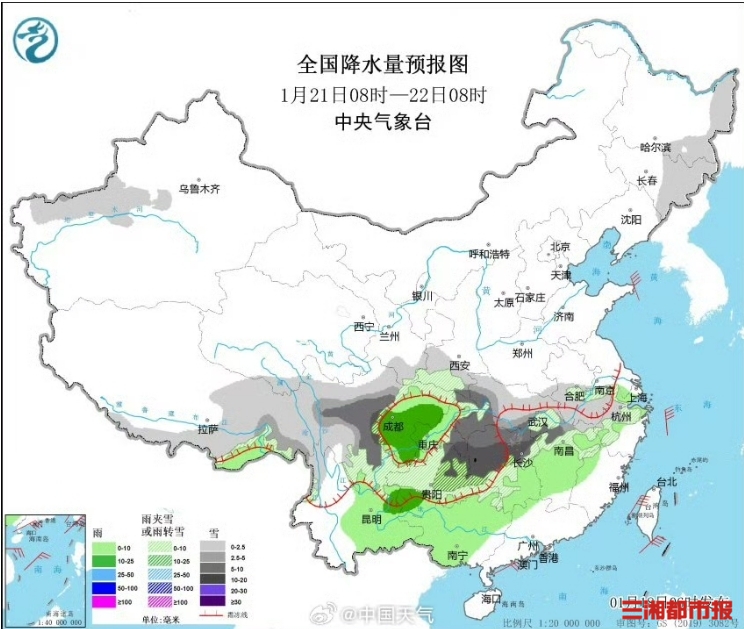 三湘都市报·新湖南客户端1月18日讯(全媒体见习记者 李致远)1月18日,根据中央气象台最新发布的预报图显示,1月21至22日,大范围降雪或将集中在南方出现。其中,湖南中北部地区成此次降雪核心区域,长沙有望见到大到暴雪。