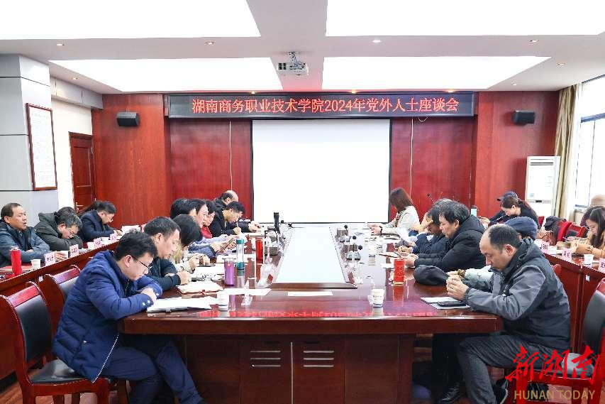 科教新报·新湖南客户端讯(通讯员 欧阳晓婷)1月19日,湖南商务职业技术学院召开“凝聚党外人士智慧 助力学院高质量发展”为主题的党外人士座谈会,向学院党外人士通报2023年学院重点工作进展情况,并就做好学院2024年工作听取党外人士意见建议。全体院领导、各党总支书记、各民主党派支部主委、副主委、成员代表、无党派人士代表参加会议。党委副书记、副院长廖志刚主持会议。