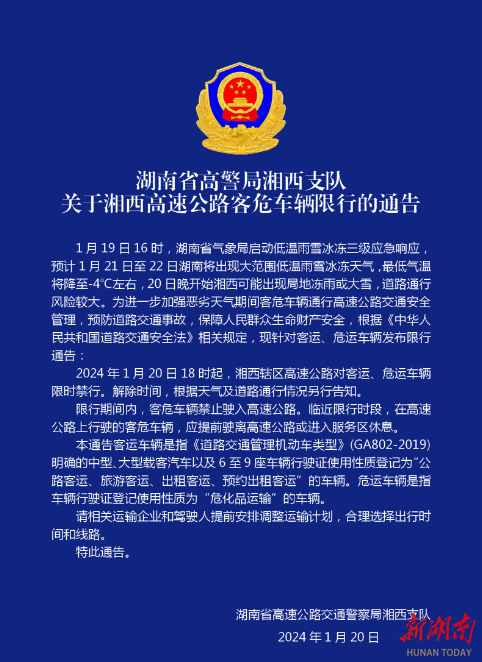 应对低温雨雪天气|省高警局湘西支队关于湘西高速公路客危车辆限行的通告