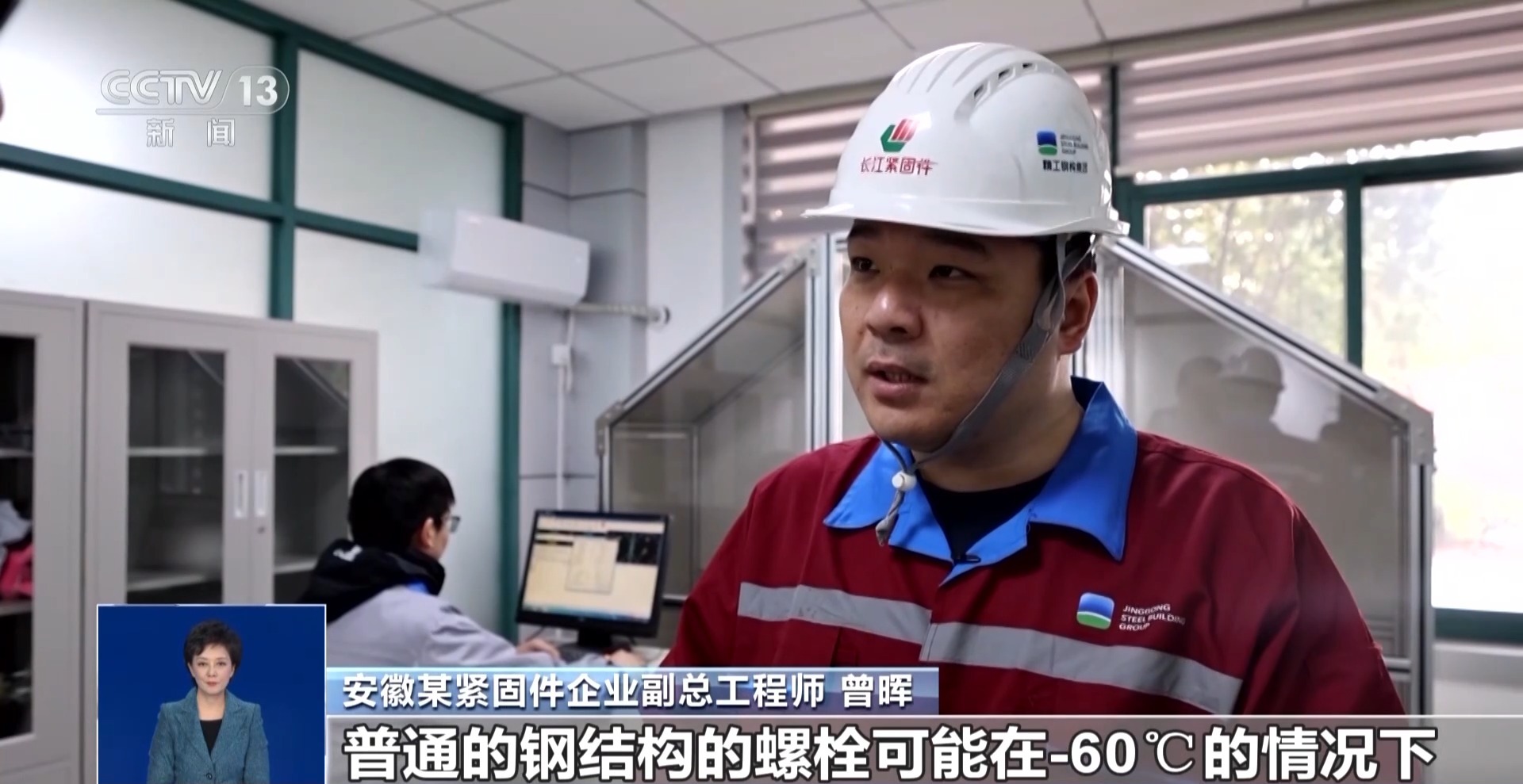 安徽某紧固件企业副总工程师 曾晖:普通的钢结构的螺栓可能在-60℃的情况下,六七焦(的冲击力)可能就断了,但是我们供到南极罗斯海的螺丝,在-60℃的情况下能达到67到70多焦冲击力的这个区间。